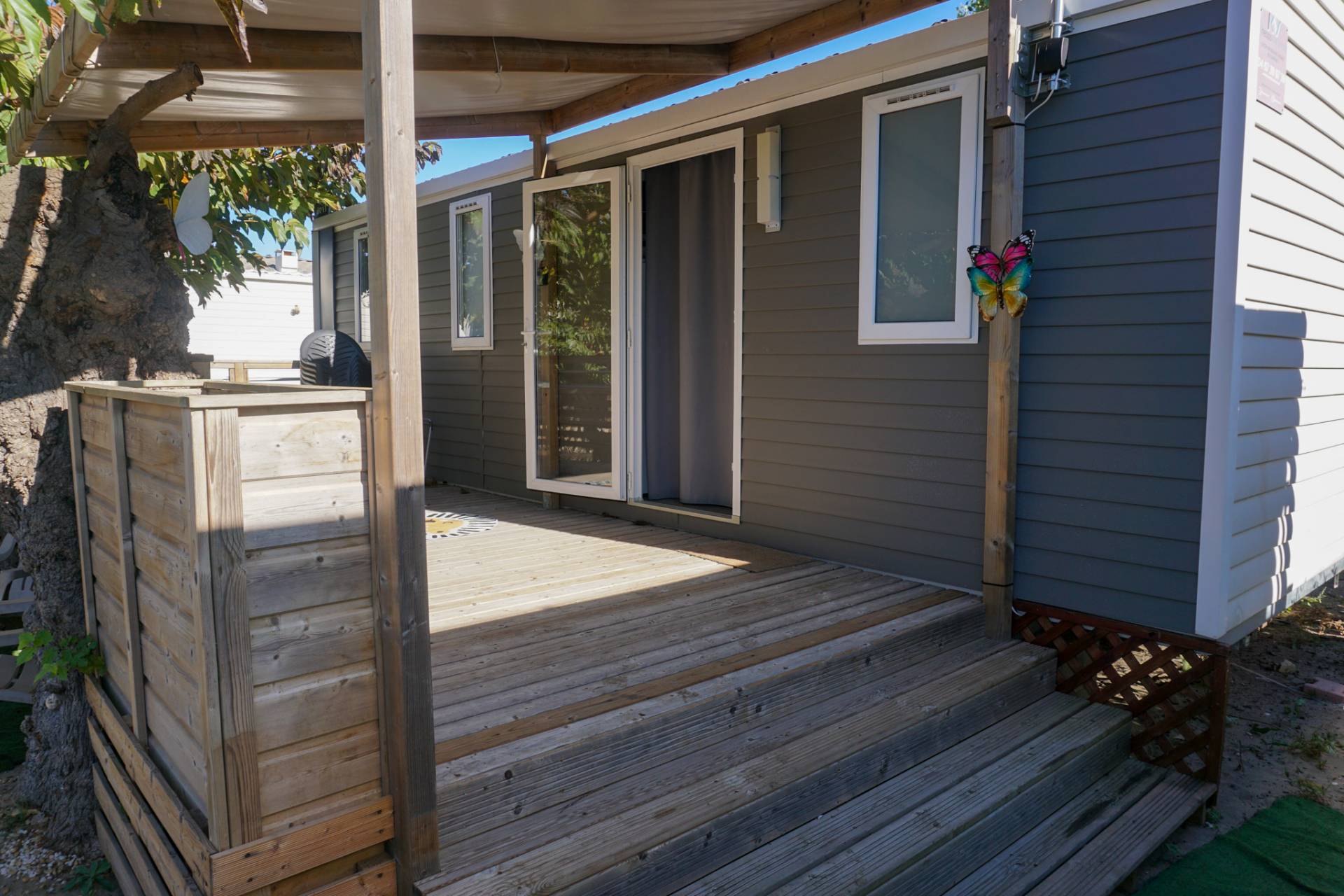 Equipement(s) en + : machine à laver - stores occultants moustiquaires - terrasse haute semi couverte - cafetière - grille pain - kit locatif